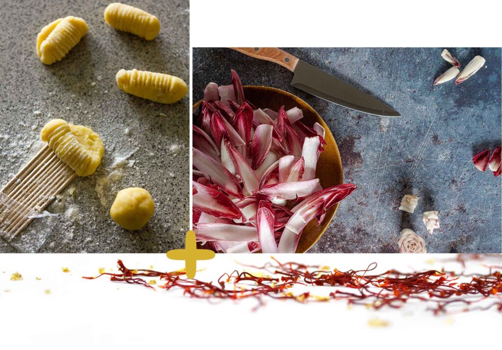 Gnocchi di patate con radicchio, robiola e Zafferano.