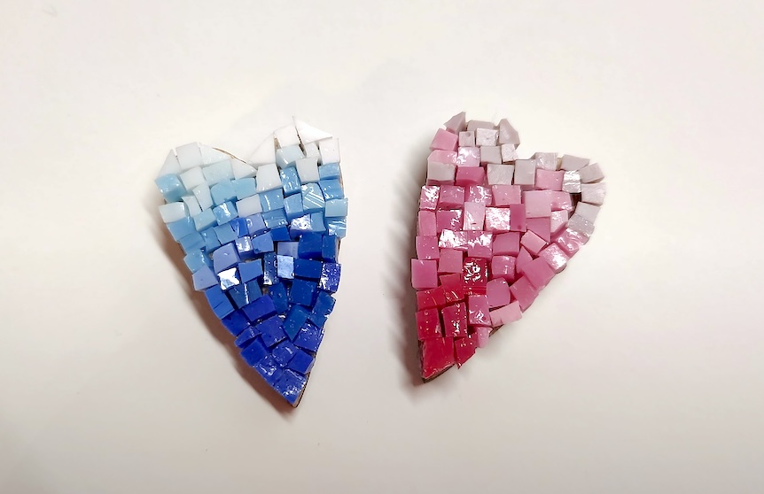 Cuoricino segnaposto o fermacarte in legno con calamita sul retro ed inserti in mosaico. La loro irregolarità garantisce l’autenticità e l’unicità del prodotto.